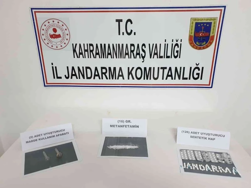 Alınan bilgilere, Afşin İlçe Jandarma Komutanlığı ekipleri, ilçeye bağlı Arıtaş Mahallesi’nde R.Ö.’ye ait evde uyuşturucu ve uyuşturucu hap kullandığı istihbaratı aldı. Savcılıktan alınan karar doğrultusunda ikamete operasyon düzenledi. İçeride bulunan şahısların üzerlerinde ve evde yapılan aramada, 16 gram metamfetamin ile 126 adet uyuşturucu hap ve uyuşturucu kullanma aparatları ele geçirildi.