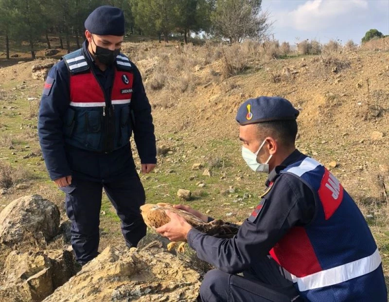 İhbar üzerine bölgeye yönlendirilen İlçe Jandarma Komutanlığı ekipleri, kanadından yaralı olduğunu belirlediği şahini korumaya aldı.