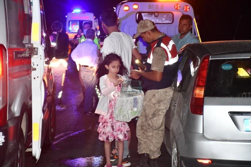 Öte yandan kaza sonrası kazazede bir kız çocuğunun jandarma korucusunun elindeki, kendisine ait muhabbet kuşunu sevdiği görüldü.