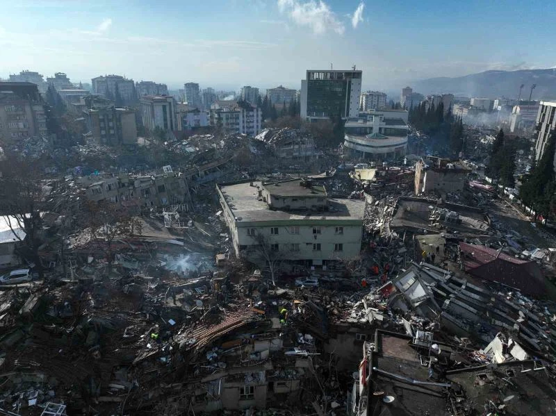 7.7 ve 7.6 büyüklüklerindeki depremlerin vurduğu Kahramanmaraş il merkezindeki enkaz yığınları, dron fotoğraflarına yansıdı.