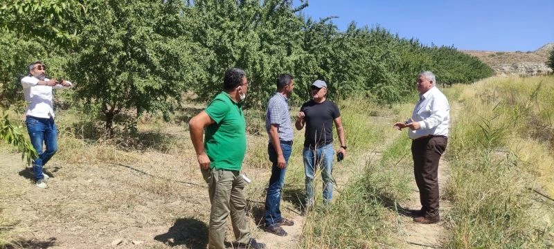 Adıyaman’ın Kahta Ziraat Odası kuraklık ile mücadele kapsamında badem bahçelerinde arazi çalışması yapılıyor.