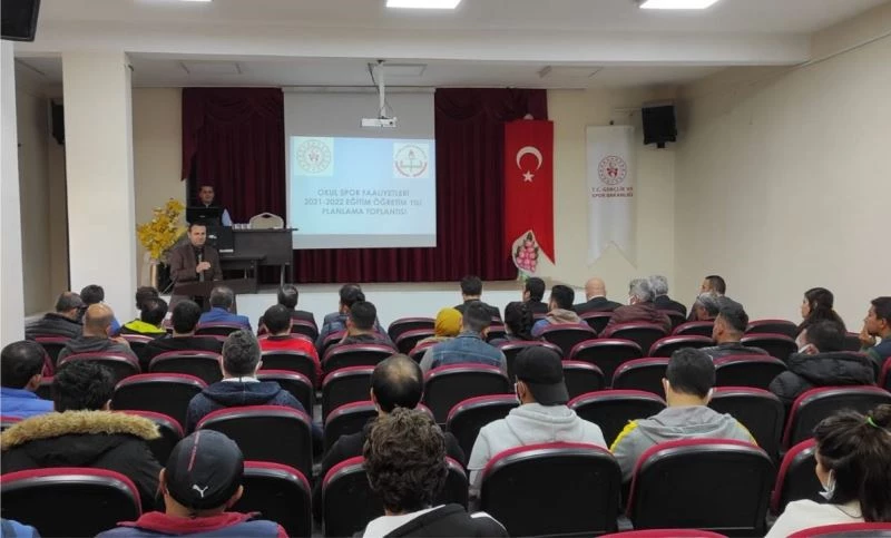 BİLSEM toplantı salonunda düzenlenen okul sporları faaliyetleri toplantısına, Spor Hizmetleri Müdürü Zeynel Abidin Deneri, İlçe Müdürü Mustafa Çiçek, Milli Eğitim Müdürü İbrahim Halil Tunçmen, Şube Müdürleri Mehmet Türk, Sezgin Yıldırım ve Hikmet Pınar, okul sporları il ve ilçe temsilcileri, beden eğitimi öğretmenleri ve antrenörler katıldı.