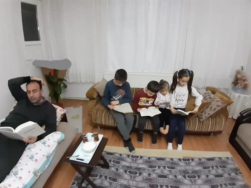‘Ekranı Karart, Kendini Aydınlat’ sloganıyla hareket eden Kahta İmam Hatip Ortaokulu öğretmen, öğrenci ve velileri her akşam kitap okuyor.