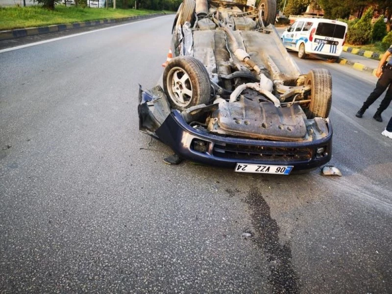 Kaldırıma çarpan otomobil takla attı: 1’i çocuk 2 yaralı