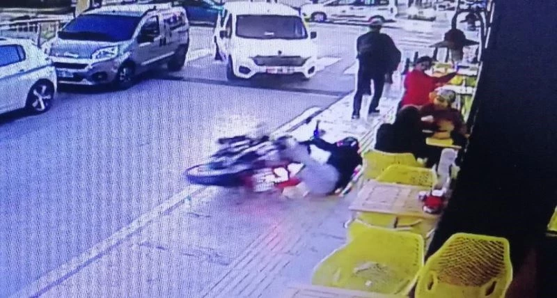 Öte yandan, kaza anı ve yaşananlar iş yerinin güvenlik kamerasına yansıdı.
