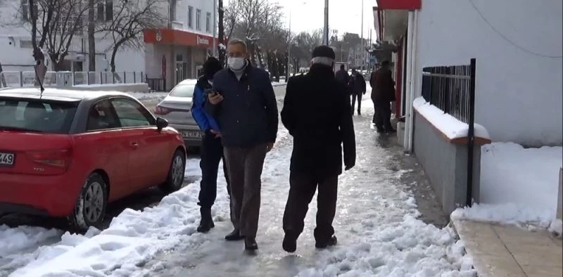 Tekirdağ’ın Muratlı ilçesinde geçtiğimiz gün sona eren kar yağışının ardından buzlanma ve don olayı yaşanırken, kaldırımlar buz pistine döndü.