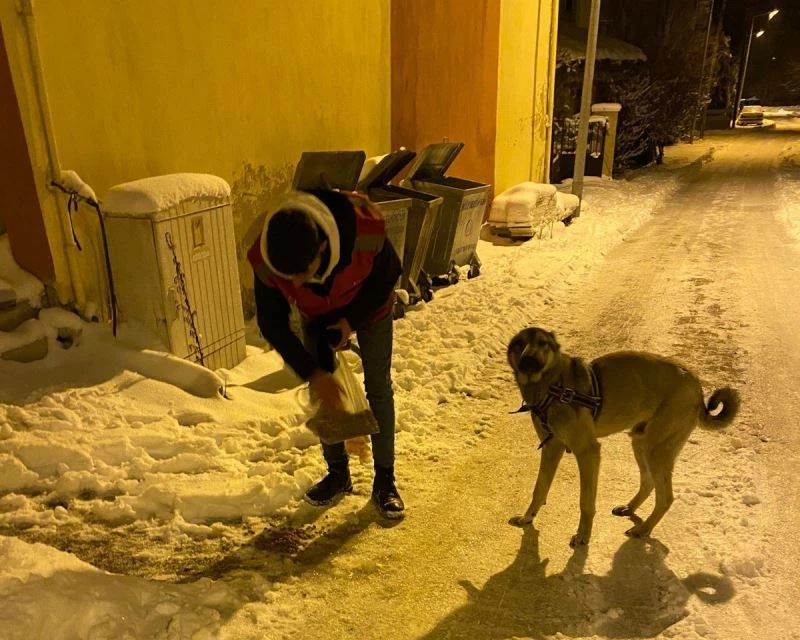 Denizli’nin Kale ilçesinde Alperen Ocağı üyesi gençler tarafından aşırı kar yağışının ardından sokak hayvanları için sokak sokak yemleme yapıldı.