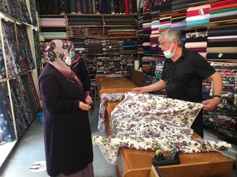 Hazır dikilmiş kıyafetleri tercih etmeyen vatandaşlar kumaşçıların yolunu tuttu.