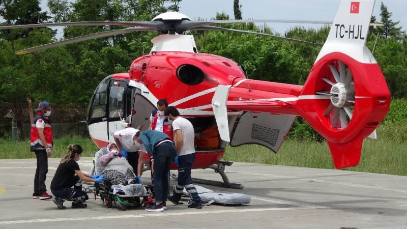 Samsun’da kalp krizi geçiren kadın, ambulans helikopterle hastaneye kaldırıldı.