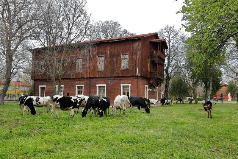 Trakya Üniversitesi Karaağaç kampüsünde biyoçeşitliliğin ve toprak sağlığının sürdürülebilirliğini arttırmaya yönelik gerçekleştirilen uygulamada büyükbaş hayvanlar, doğal çim biçme görevi üstlendi.