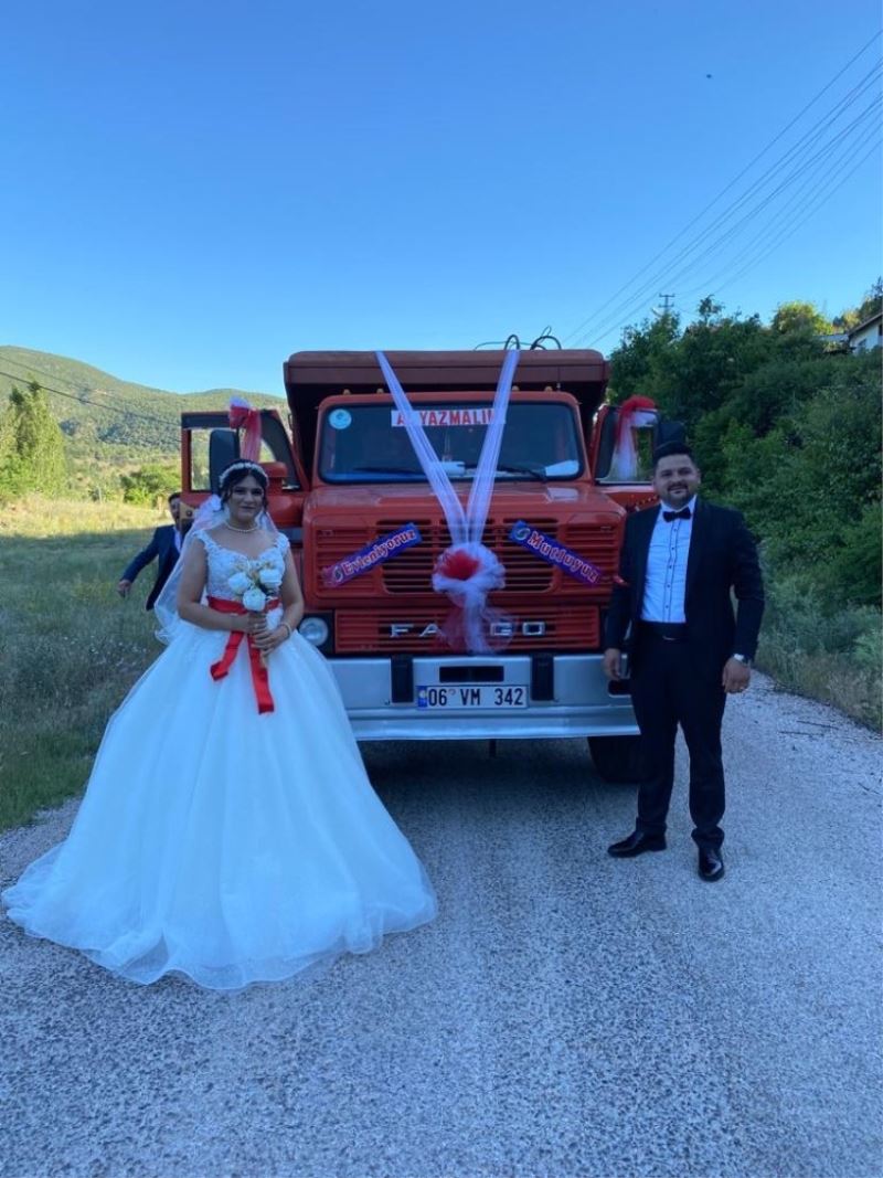Ankara’nın Kızılcahamam ilçesinde nakliyecilik ile uğraşan bir damat gelin evine süslettiği kamyonuyla gitti. Kamyonunu süsleten ve önüne ’Al Yazmalım’ yazdıran damat, gelini evinden aldı. Daha sonra çift, birlikte düğün salonuna kadar kamyonla gitti. Kamyon gelin arabası görenlerin ilgi odağı oldu.
