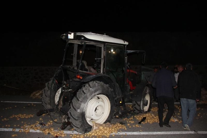 Sivas’ın Zara ilçesinde patates yüklü traktör ile kamyonun çarpışması sonucu meydana gelen trafik kazasından 1 kişi hayatını kaybetti, 3 kişi yaralandı.