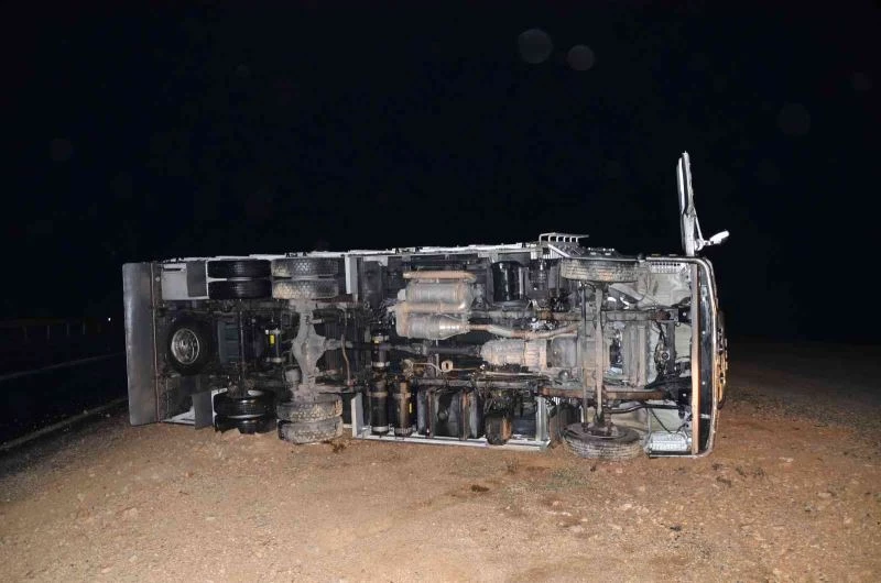 Antalya’nın Akseki ilçesinde kontrolden çıkan bir kamyon şarampole devrildi. Sürücü kazayı yara almadan atlattı.