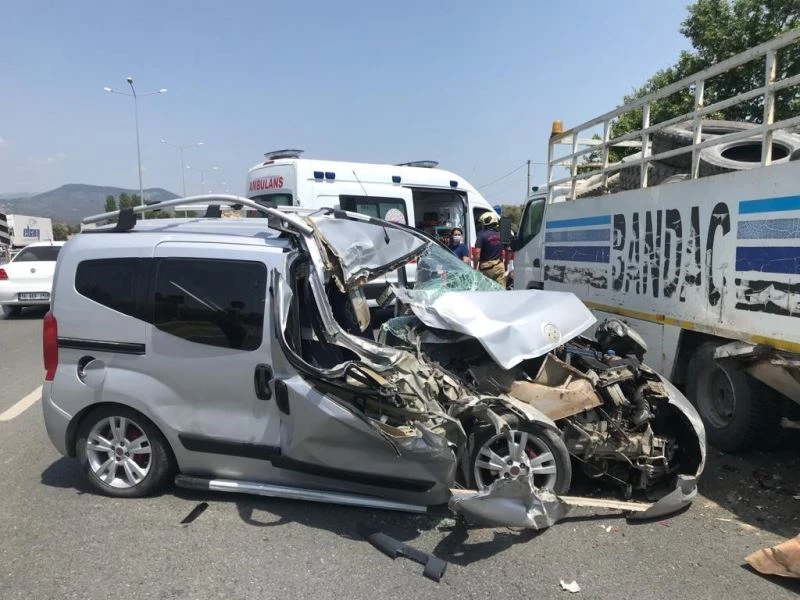 Balıkesir’in Edremit ilçesinde bir kamyona arkadan çarpan otomobil hurdaya döndü. Kazada bir kişi yaralandı.