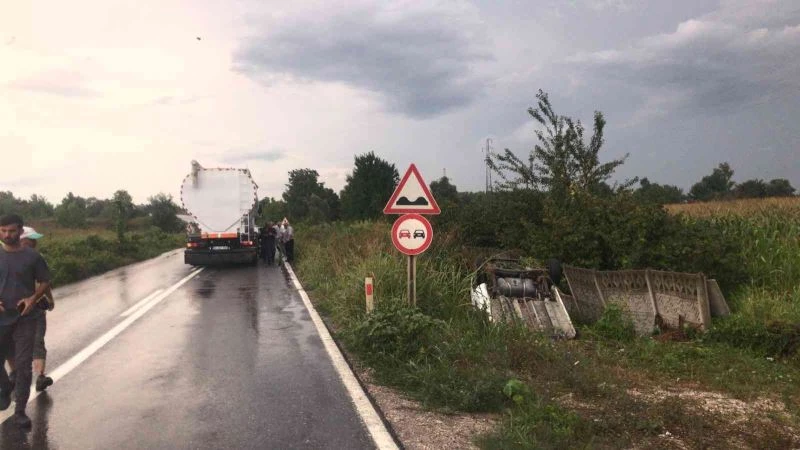 Sakarya’nın Karapürçek ilçesinde kontrolden çıkan hafif ticari araç, karşı yönden gelen kamyona çarparak su kanalına düştü.