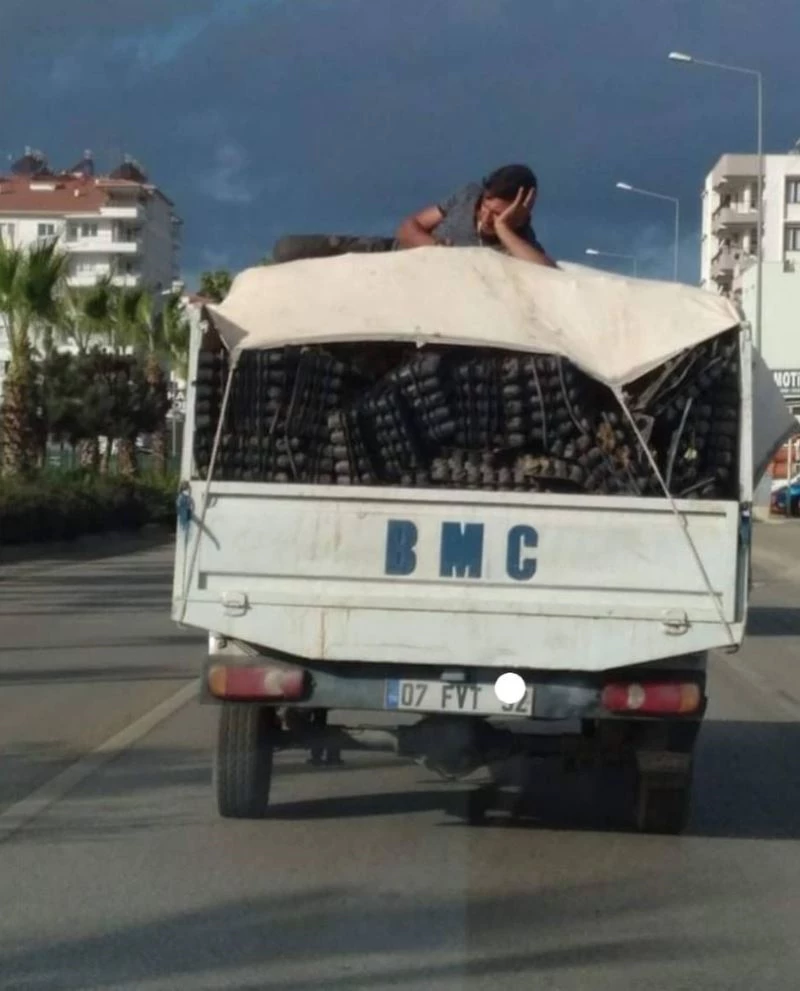 Görüntüler Antalya-Serik karayolu D-400 karayolu üzerinde kaydedildi. Karayolunda seyir halindeki plastik kasa yüklü kamyonet üstünde yolculuk yapan vatandaş hem gülümsetti hem de kimseye aldırış etmeden yaptığı yolculuk pes dedirtti. Serik Antalya karayolunda yaşanan anlar cep telefonu kamerası ile kaydedildi. Görüntüle,r çeken kişi tarafından sosyal medya hesaplarından da paylaşıldı.