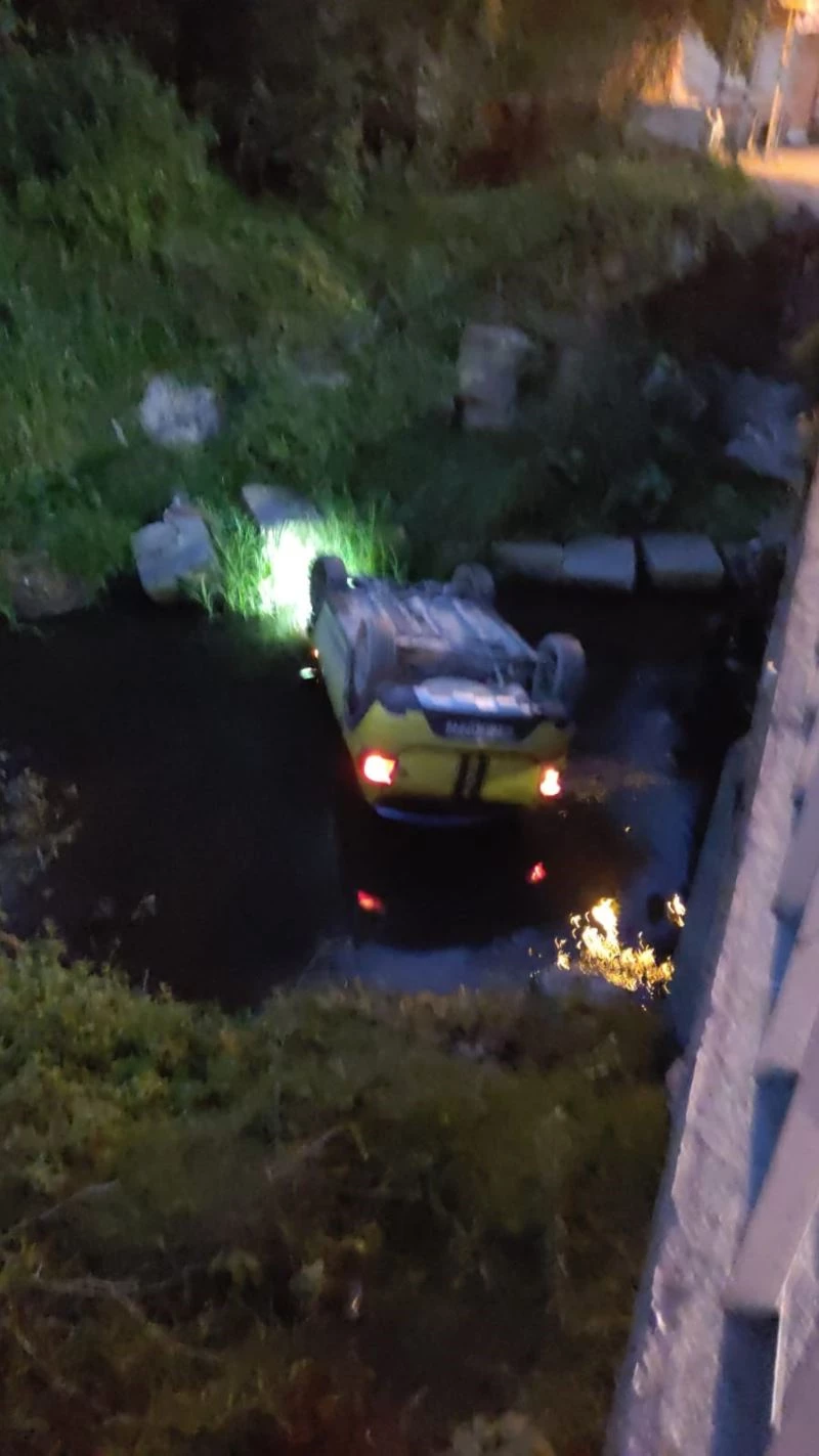 Zonguldak’ın Çatalağzı Beldesinde sürücüsünün kontrolünden çıkan ticari taksi dereye uçtu. Kazada araç sürücüsü hafif şekilde yaralandı.