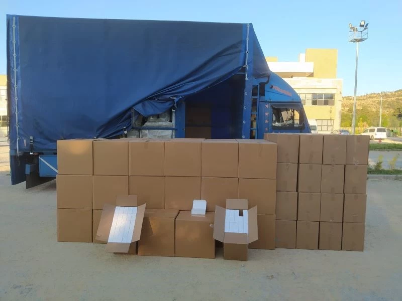 Kamyonette bir milyon 200 bin adet kaçak boş makaron ele geçirildi