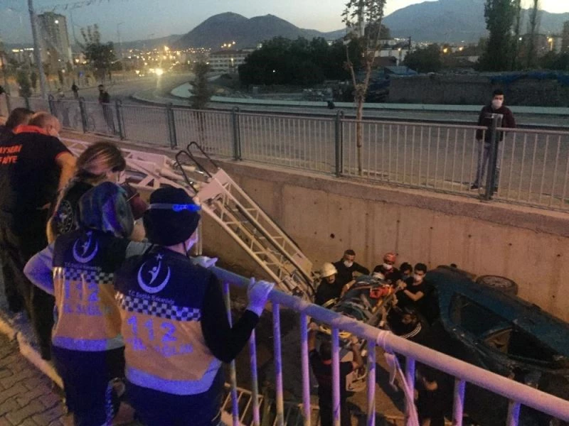Kayseri’nin Melikgazi ilçesinde otomobilin kanala düşmesi sonucu meydana gelen kazada can pazarı yaşandı. Otomobilde bulunan karı koca sıkıştıkları yerden kurtarılırken, kanaldan itfaiye merdiveniyle çıkarılarak ambulansa taşındı.