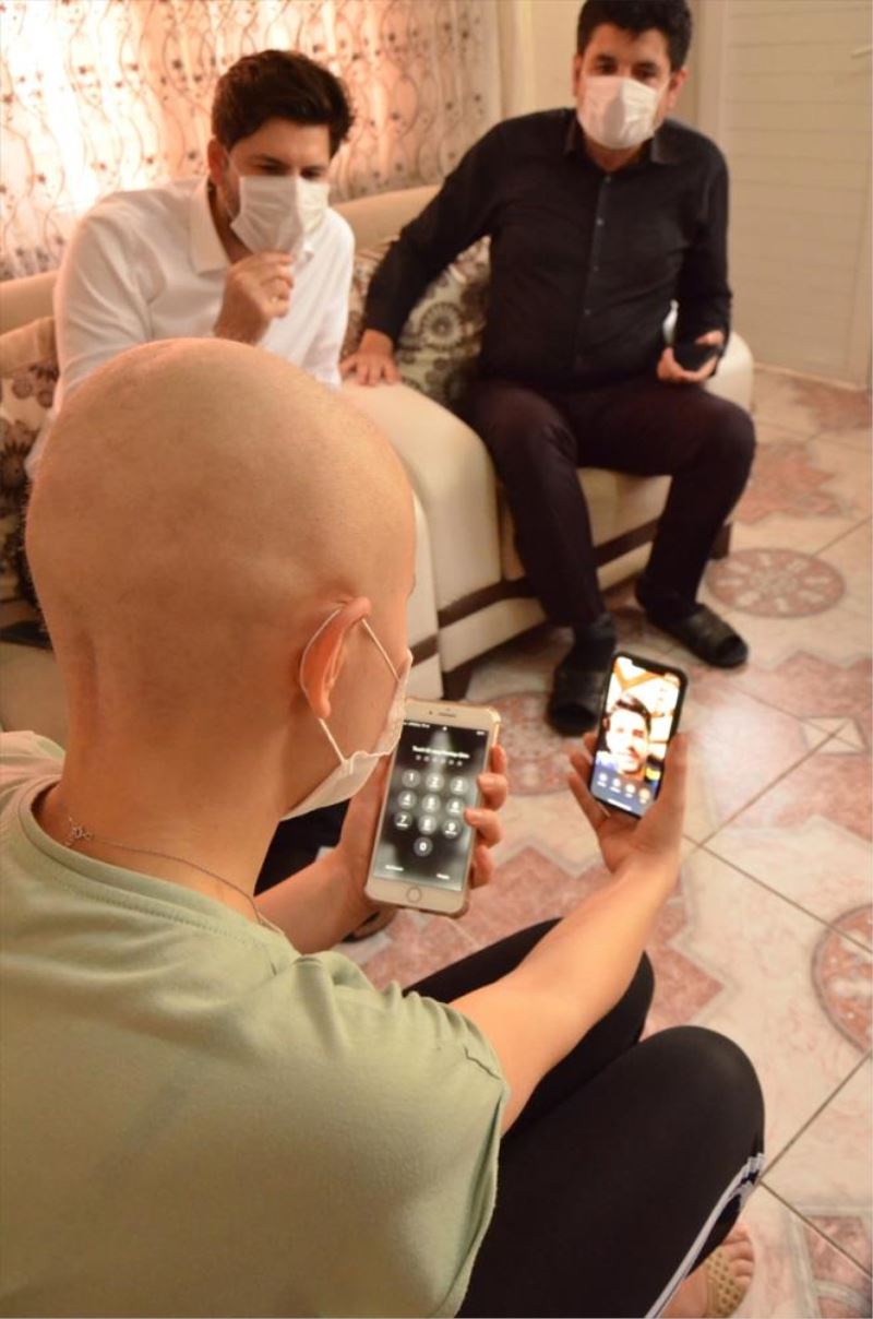 MERSIN (AA) - Mersin'de, sinir sisteminde tümör bulunan ve yumusak doku kanseri tedavisi gören 23 yasindaki Ayyüce Çinar, hayrani oldugu Fenerbahçeli futbolcu Alper Potuk'la telefonla görüntülü görüsme gerçeklestirdi.