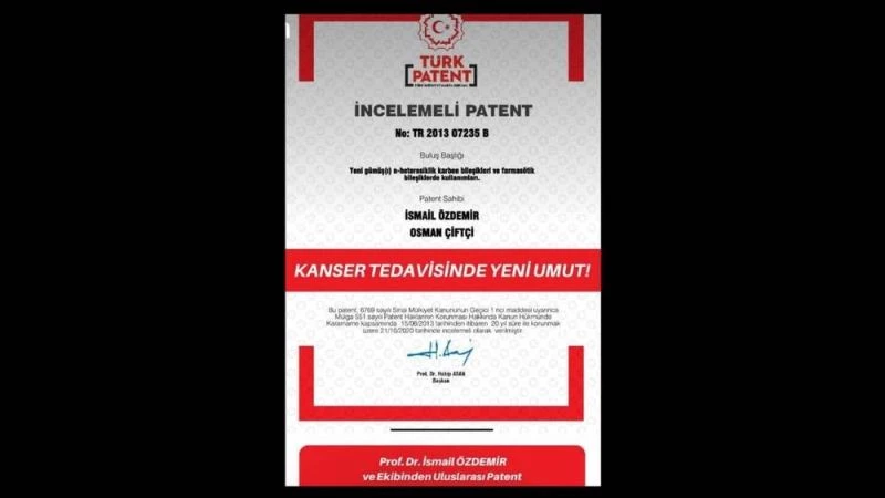 Malatya İnönü Üniversitesi Fen Edebiyat Fakültesi Kimya Bölümü öğretim üyesi Prof. Dr. İsmail Özdemir ve Pamukkale Üniversitesi Tıp Fakültesi Dekanı ve Tıbbi Farmakoloji Anabilim dalı öğretim üyesi Prof. Dr. Osman Çiftçi tarafından beyin tümörülerinin tedavisinde kullanılmak üzere geliştirilen “Gümüş(I) N-Heterosiklik Karben Bileşikleri” için uluslararası patent alınması memnunlukla karşılandı.