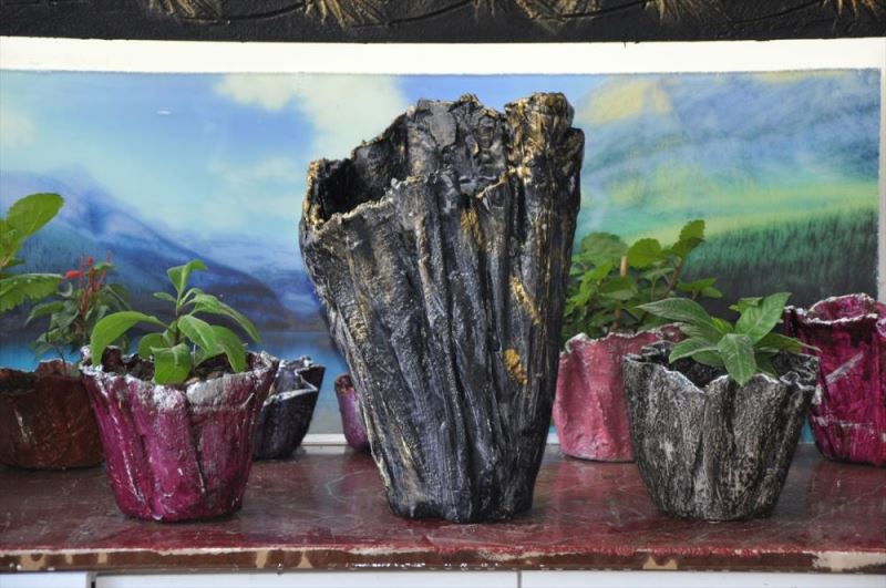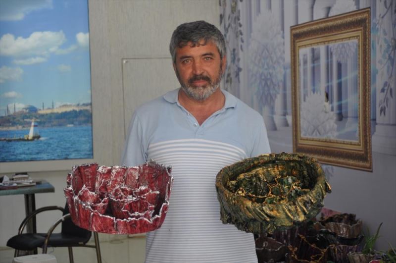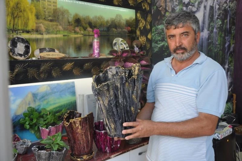 "2 yil önce kanser hastasi oldum. Kendimi bu tür arayislara verdim. Çok sükür kanseri de yendim. Simdi hobi olarak yaptigim is yeni meslegim oldu. Kumas ve çimentonun birlesimi sonrasi kurumasi, boyanmasi ve bekleme sürecinin ardindan 3 günde saksilar meydana geliyor. Kahramanmaras'ta çiçekçilere ve çevre illere toptan satis yapmaya basladim. Kendimi her geçen gün gelistirmeye çalisiyorum. Halkin ilgisi de var. Saksilarin, Gaziantep, Adana, Osmaniye ve Nevsehir basta olmak üzere birçok yakin ile de dagitimini yapiyoruz."