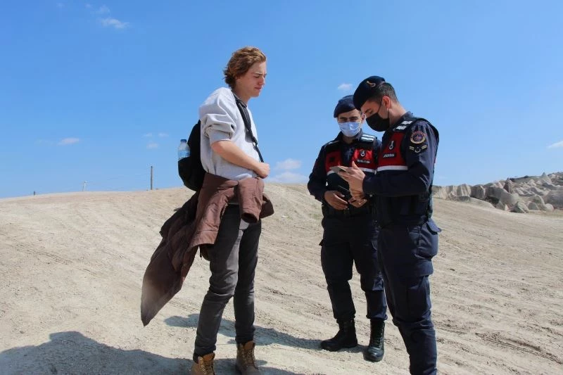 Nevşehir’in merkez ilçeye bağlı Göreme beldesinde bulunan Kılıçlar Vadisinde jandarma araçlarının devriye gezerek Türkçe ve İngilizce anonslarla maske uyarısı yapması dikkatlerden kaçmazken maske takma kuralına tüm uyarılara rağmen uymayan 37 yabancı turiste para cezası kesildi.