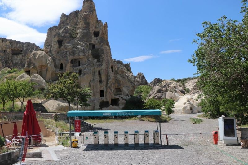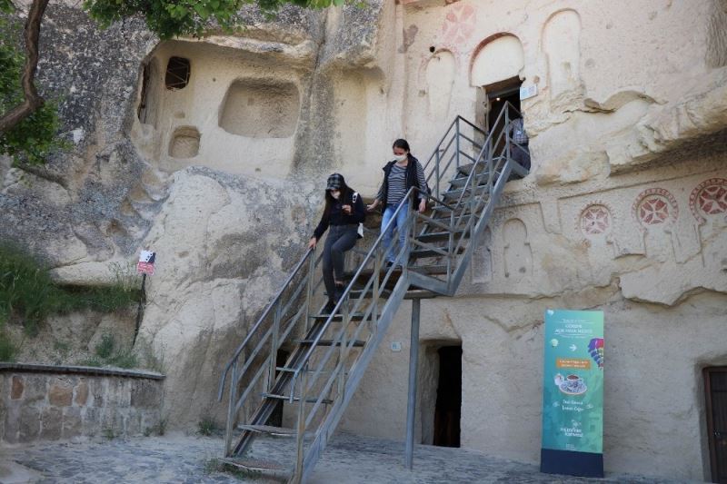 Korona virüs ile mücadele kapsamında Kültür ve Turizm Bakanlığı tarafından Mart ayında kapatılan müze ve ören yerleri bugün itibarıyla yeniden ziyarete açıldı. Nevşehir’in Avanos ilçesine bağlı Paşabağları ve Nevşehir’in merkezi ilçeye bağlı Göreme beldesinde bulunan Göreme Açık Hava Müzesi ziyaretçilerini bekliyor. Müze ören yeri girişinde turistlerin ateşleri ölçülürken müzelere maskesiz ziyaretçi alınmıyor.