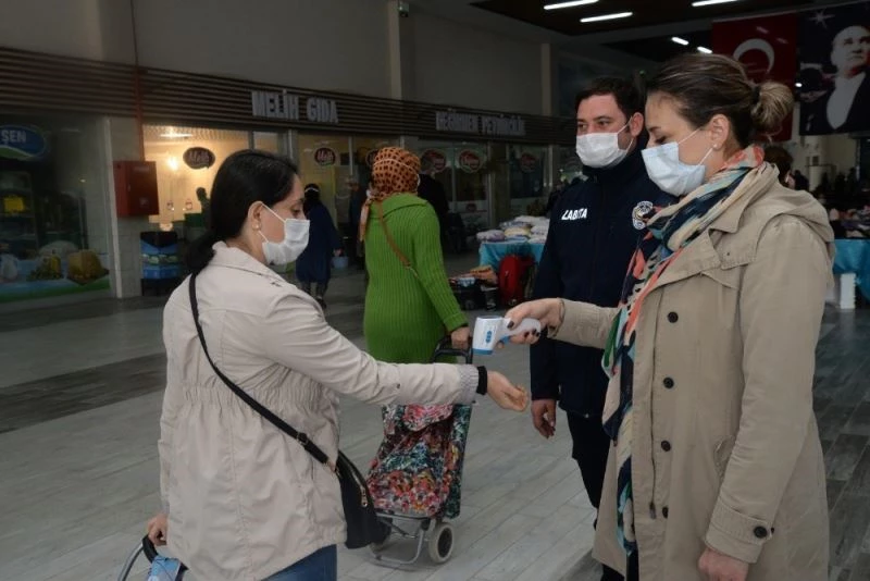 Pazar içerisinde ve girişlerinde ilave tedbirler alınırken, ekipler gün boyunca alışverişe gelen vatandaşların ateşlerini ölçtü. Yapılan yeni düzenleme ile birlikte; pazar girişleri teke düşürüldü ve kapalı pazar içerisinde 15 yaşından küçük çocukların girmesinin önüne geçildi. Önceliğin vatandaşların sağlığı olduğu belirtilirken, pazar giriş ve çıkış noktalarına dezenfektanlar yerleştirildi.