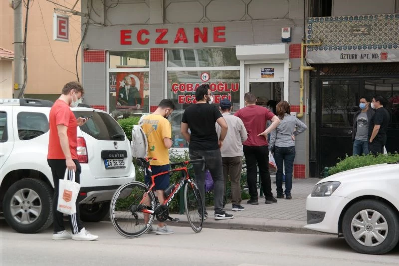 Eskişehir’de yaşanan kapanma sonrasında öğle saatlerinde eczane önünde oluşan uzun kuyruklar dikkat çekti.