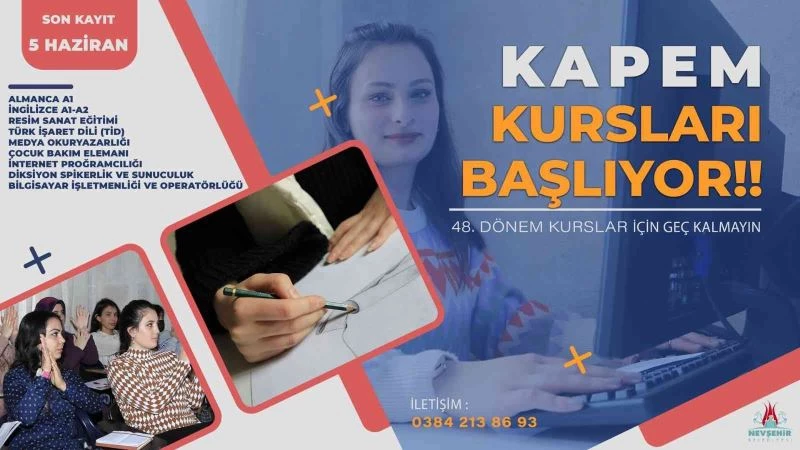 Nevşehir Belediyesi Kapadokya Eğitim Merkezi (KAPEM)’de açılacak olan 9 yeni kurs için kayıt dönemi başladı.