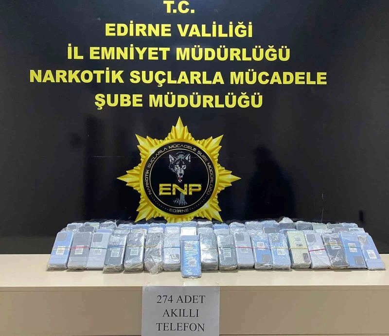 Edirne İl Emniyet Müdürlüğü Narkotik Suçlarla Mücadele Şubesi ekipleri, uyuşturucu veya uyarıcı madde ticaretinin önlenmesine yönelik yaptıkları risk analizi çalışmaları neticesinde Bulgaristan plakalı aracın, sıklıkla yurtdışından Türkiye’ye giriş yaptığını tespit ederek çalışma başlattı. Narkotik Şube Müdürlüğü ekipleri ve Edirne Gümrük Muhafaza Kaçakçılık ve İstihbarat Müdürlüğü personeli ile Kapıkule Gümrük Sahası’nda yapılan müşterek çalışmada, aracın motor kısmının altında ekstra bir muhafaza kalkanı içine gizlenmiş, piyasa değeri yaklaşık 2 milyon 400 bin lira olan 274 adet cep telefonu ele geçirdi. Araçta bulunan Bulgaristan uyruklu D.P. ile M.M. ise gözaltına alındı. Olayla ilgili inceleme sürüyor.