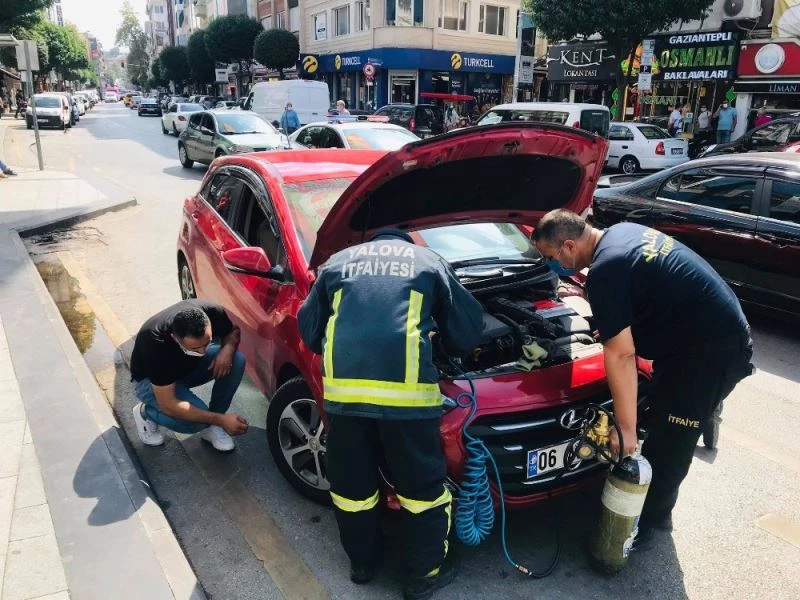 Yalova’da itfaiye ekipleri otomobilin kaputuna giren kediyi uzun çabalar sonucu çıkardı.