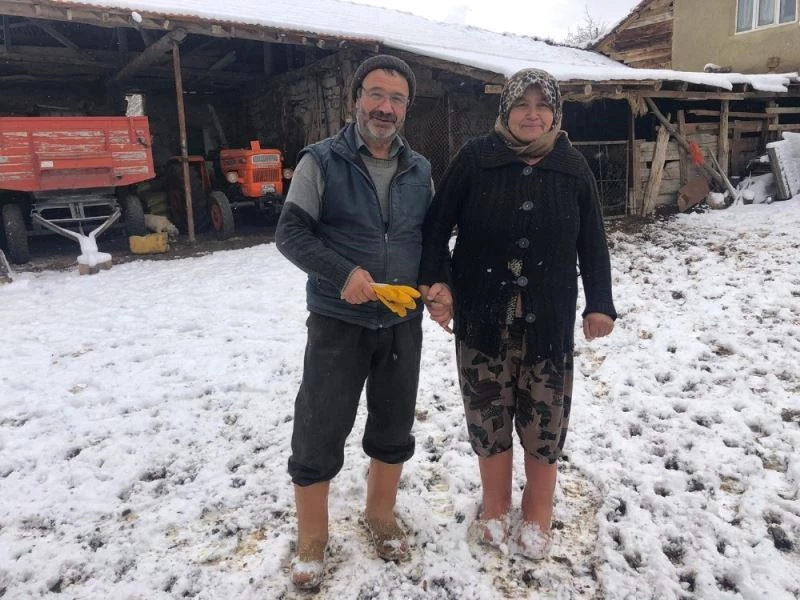 Geçimlerini küçükbaş hayvancılıkla sağlayan Meryem ve Ali Gürbüz çifti, zorlu kış şartlarında hayvanlarıyla iç içe yaşam mücadelesi veriyor.