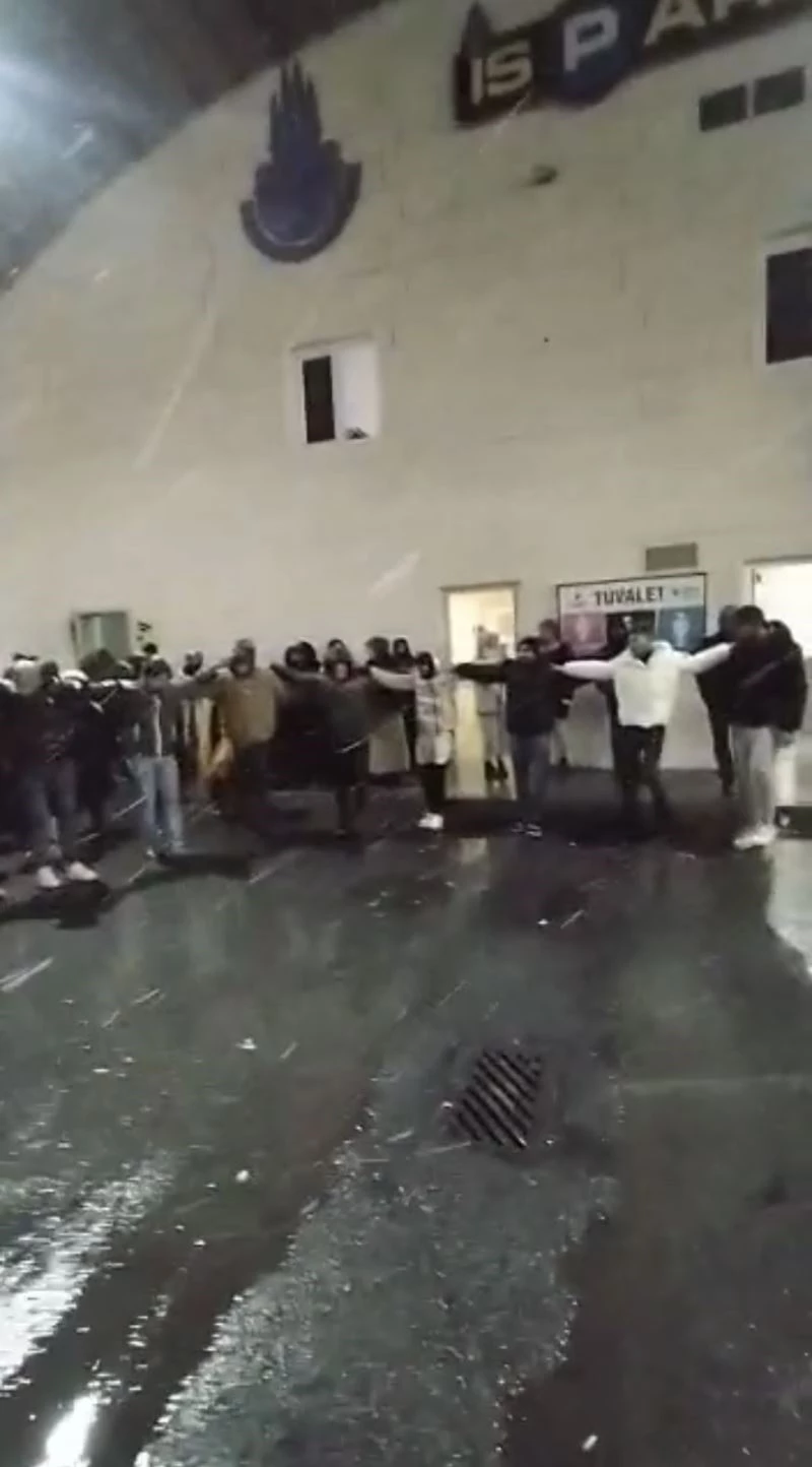 Olay, Eyüpsultan ilçesi Alibeyköy Cep Otogarı’nda yaşandı. Asker uğurlamak için toplanan bir grup, türküler eşliğinde kar altında halay çekti. Yağan kara ve soğuk havaya aldırış etmeyen grubun içleri ısıtan görüntüsü cep telefonu kamerası tarafından kaydedildi.