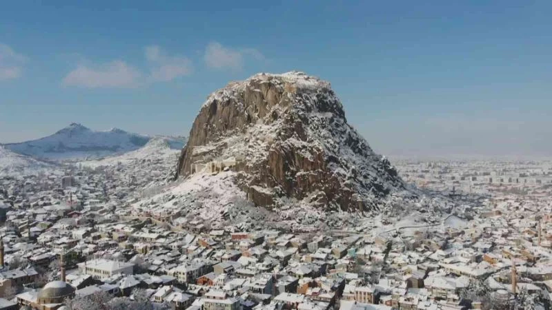 Kar altındaki Afyonkarahisar drone ile görüntülendi