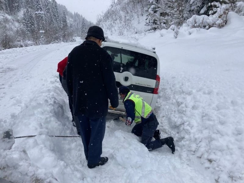 Kastamonu-Cide karayolu üzerinde yoğun kar yağışı sonrası direksiyon hakimiyetini kaybederek kara saplanan araç, jandarma ekiplerinin yardımıyla kurtarıldı.