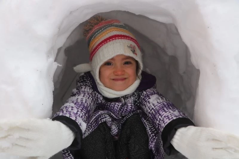 Sivas’ta geçtiğimiz gün akşam saatlerinde başlayan kar yağışı sabah saatlerine kadar etkisini hissettirmişti. Yoğun kar yağışının etkisiyle kent merkezinde kar kalınlığı 15 santimetreyi buldu. Kar, vatandaşlara sokağa çıkma kısıtlamasını unutturdu. Aileler çocuklarıyla birlikte kardan adam yaparak ve kartopu oynayarak doyasıya eğlendiler. Karın tadını kayarak çıkarmak isteyen bazı çocuklar, Tuzlugöl Mahallesi’nde bulunan Yumurtatepe’ye akın etti. Çocuklar, karın keyfini naylonlarla kayarak çıkarttılar. Camikebir Mahallesi’nde bir ailenin Ayşe isimli kızlarına yaptıkları mini iglo ev görünümüyle dikkat çekti.