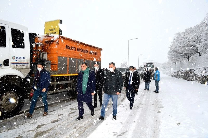 Malatya merkez ve ilçelerde gece saatlerinde başlayan kar yağışı ile birlikte Malatya Büyükşehir Belediyesine bağlı ekipler çalışmalarına aralıksız bir şekilde devam ediyor. Büyükşehir Belediye Başkanı Selahattin Gürkan, sabah saatlerinde TOKİ ve Karagöz mevkiinde yapılan çalışmaları yerinde inceledi.