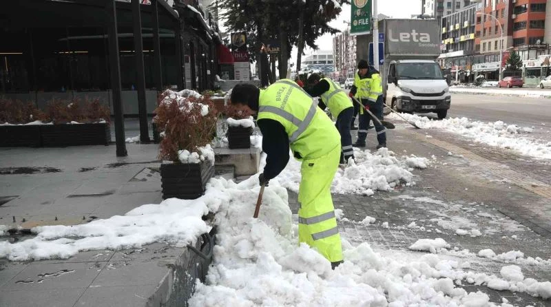 Büyükşehir Belediyesi Ulaşım Dairesi Başkanlığı Yol İşleri Şube Müdürlüğü’nün 17 ilçe 1058 mahallede 283 iş makinası ve kamyon ile 834 personelden oluşan 100 ekiple sürdürdüğü karla mücadele çalışmalarına, Park Bahçeler Dairesi Başkanlığı ekipleri de eklendi. Kent Estetiği Şube Müdürlüğü koordinasyonunda toplam 500 kişilik 50 ayrı ekip oluşturuldu. Ekipler, merkez Osmangazi, Yıldırım ve Nilüfer ilçelerinde yaya hareketliliğinin yoğun olduğu cadde, meydan ve bulvarlarda altgeçit, üstgeçit ve kaldırımlarda oluşan buzlanma olaylarına anında müdahale ediyor. Adeta acil müdahale mangası gibi çalışan ekipler, hızlı hareket kabiliyetleri sayesinde vatandaşlardan gelen ihbarlara göre sorunları anında gideriyor.