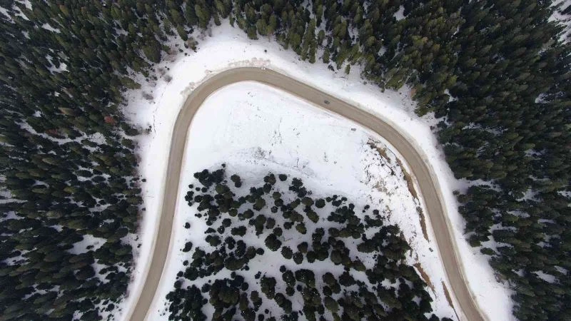 Kar manzarası ile mest eden Ilgaz Dağı, havadan görüntülendi