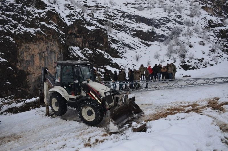Kar nedeni ile kopan elektrik hatlarının onarılmasına köylüler de yardım etti