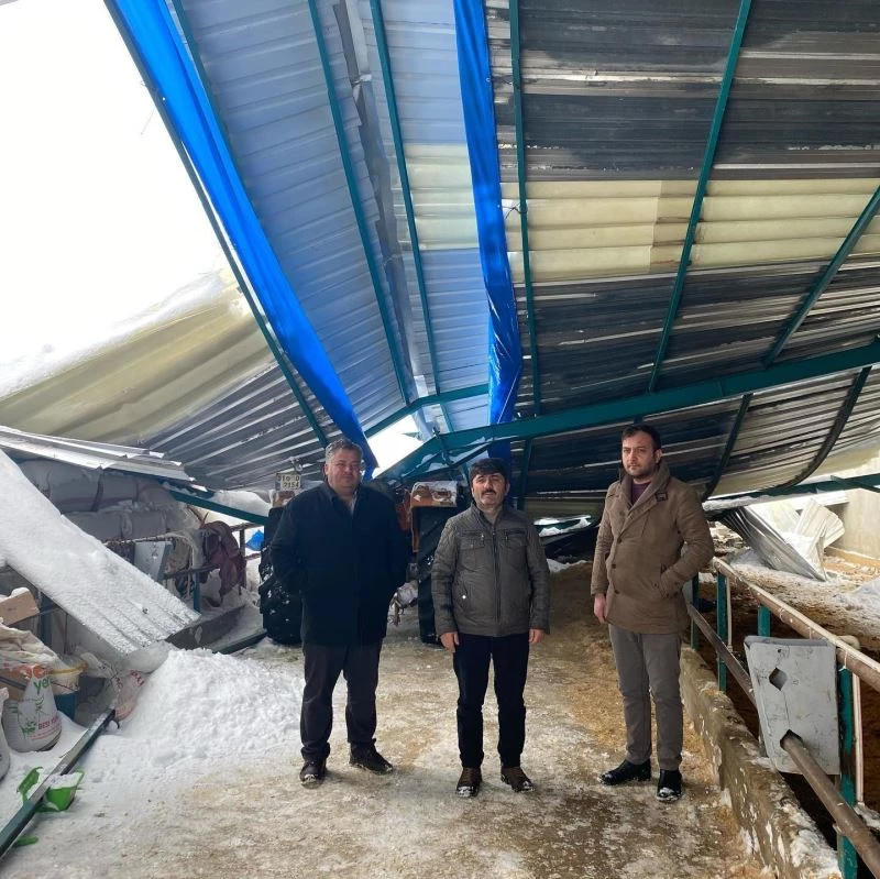 İlçeye bağlı Doğanbeyli Mahallesinde yaşanan aşırı kar yağışı ve tipi ilçede etkisini sürdürürken Bahri Alkan isimli vatandaşın ahırının çatısı çöktü.