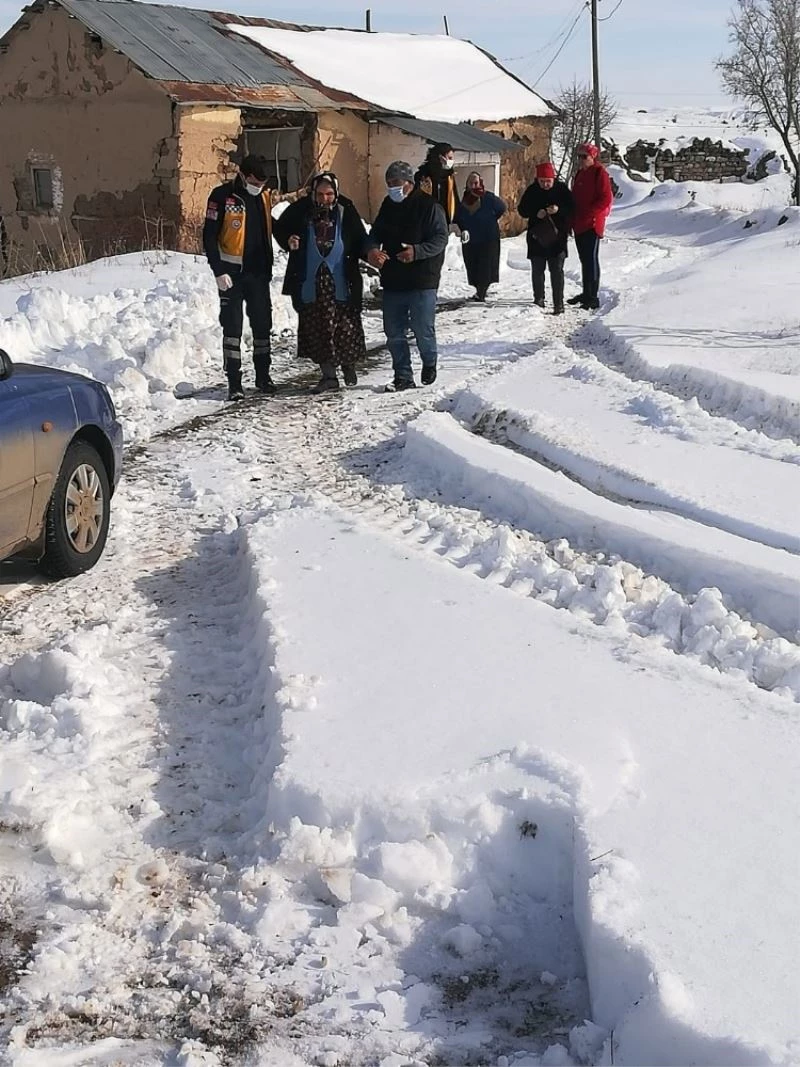 Sivas’ın Divriği ilçesinde yaşayan tansiyon hastası İ.K.’yı tedavi etmek üzere yola çıkan ve kar nedeniyle yolda kalan sağlık ekipleri 2 saat süren çalışma sonucu hastaya ulaşabildi.