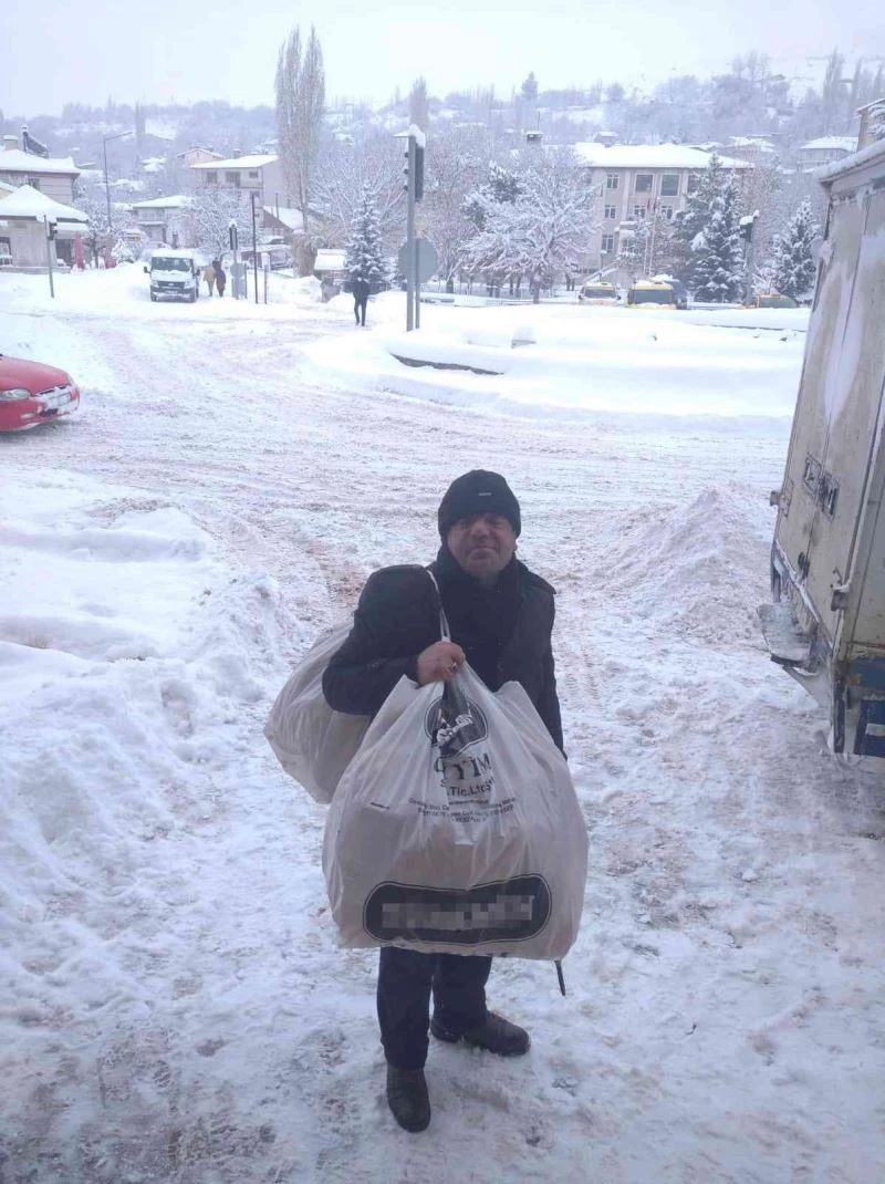 Kar nedeniyle evlerinden çıkamayanlara sırtında ekmek taşıdı