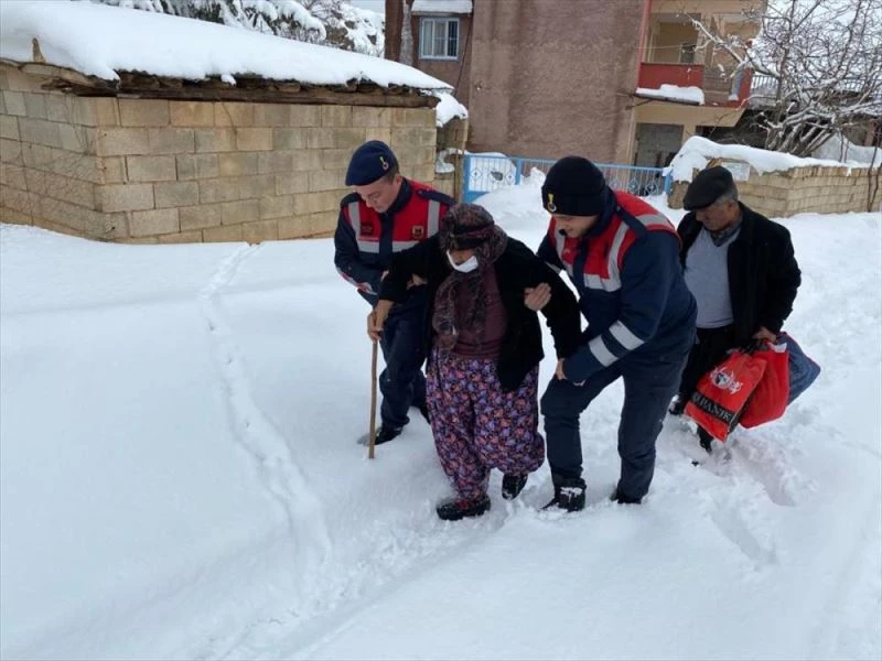 Bölgeye sevk edilen sağlık ekiplerinin yolu karla kapanan mahalleye ulaşamaması üzerine jandarmadan yardım istendi.
