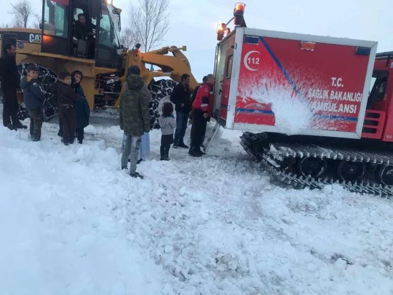 Kar kalınlığının yer yer 4 metreyi bulduğu kırsalda hasta için köye ulaşmayan çalışan ambulansta ekiplerin yardımıyla kurtarıldı. İlçeye 55 kilometre uzaklıktaki Turnagöl Mahallesinde hastalanan bir kadın için yola çıkan ekipler tipiye yakalandı. Ekipler kar üstü araçlarla hastayı alarak ambulansın bulunduğu bölgeye getirdi.