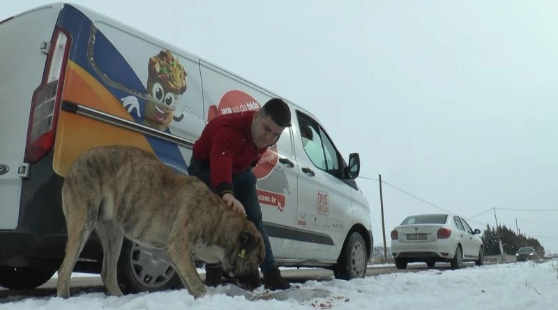 Eskişehir’de gece saatlerinde başlayan kar yağışı yüksek kesimlerde etkili oldu. Sabah saatlerinde beyaza bürünen bölgede bulunan sokak hayvanları ise unutulmadı. Eskişehir’e 15 kilometre uzaklıktaki Gülpınar Mahallesi’nde bulunan sokak hayvanları için şirket çalışanları tarafından birçok noktaya mama bırakıldı.