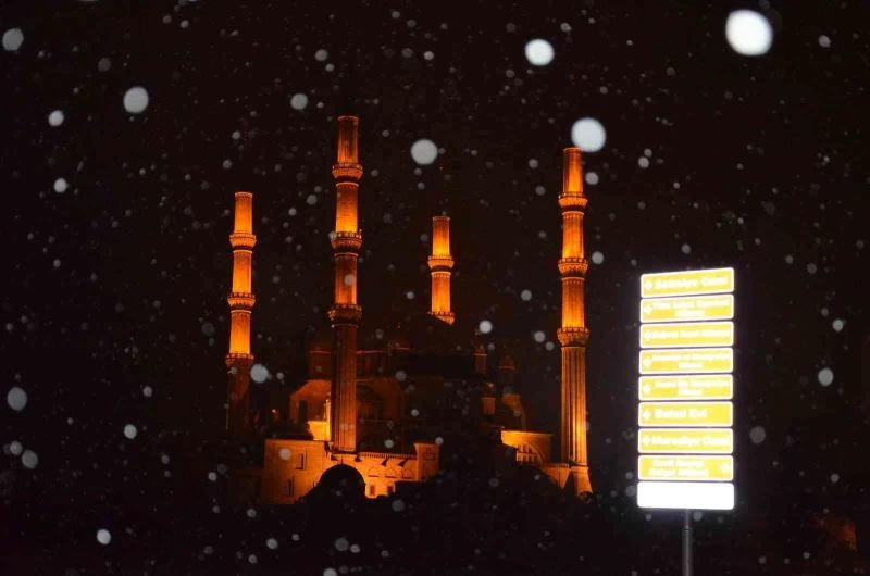 Edirne’de akşam saatlerinde başlayan kar yağışı etkisini artırarak devam ediyor.