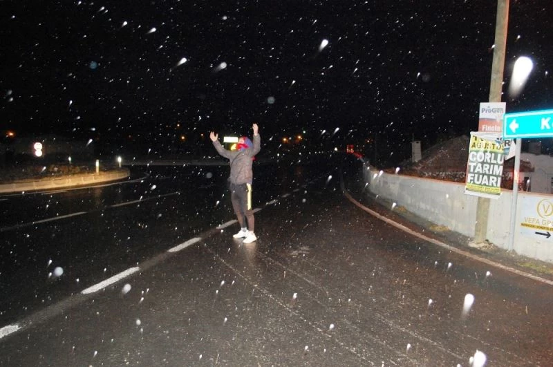 Balkanlardan Trakya’ya giriş yapan kar yağışı Tekirdağ’da etkisini gösterdi.